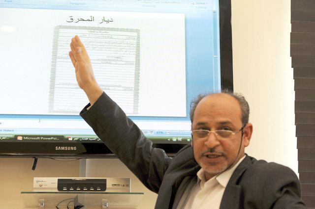 وقال خليل «سأعطيكم مثالاً عن منطقة صغيرة (القدم) تم تسجيل أراضٍ متعددة من مزارعها لإحدى الجهات دون أن يكون هناك وثائق ملكية سابقةٍ لها، فهل هذه آلية قانونية صحيحة؟».